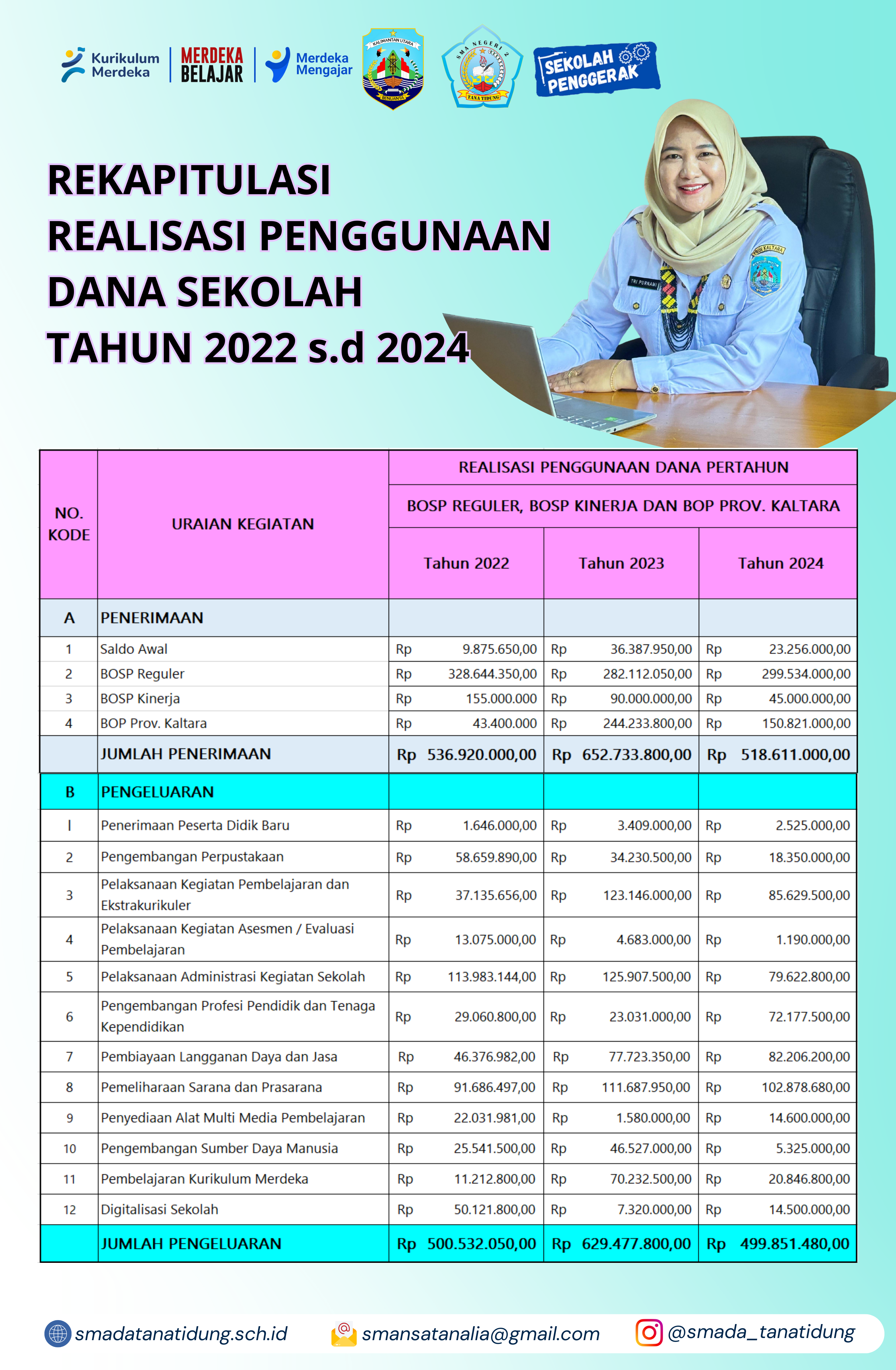 Rekapitulasi Realisasi Penggunaan Dana Sekolah Tahun 2022 s.d 2024